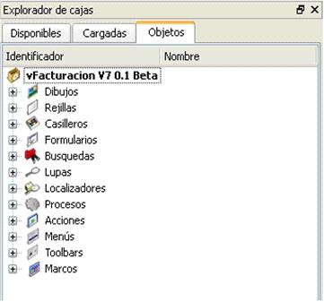 Cada caja disponible que se abre se añade a la lista de cargadas.Si en la pestaña 'Disponibles' se abre una caja que tenga herencia se cargará dicha caja y toda su herencia. Cada caja tiene un checkbox que indica si la caja ha sido modificada (ha cambiado la caja ó sus objetos).Cuando una caja esté cargada aparecerá deshabilitada en la pestaña 'Disponibles' de manera que no podrá cargarse otra vez.- Objetos: aquí están todos los objetos de una caja cargada cuando se abre (con doble clic o enter). Solo están los objetos de la última caja cargada.