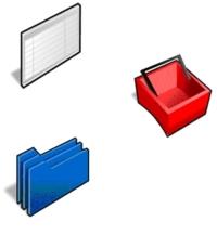 Bocetado de los iconos:Sobre papel se dibujan objetos que representen la función del icono. Gran parte de ellos se han basado en las versiones anteriores con el fín de que resulte fácil reconocerlos por parte de los usuarios habituales de Velneo